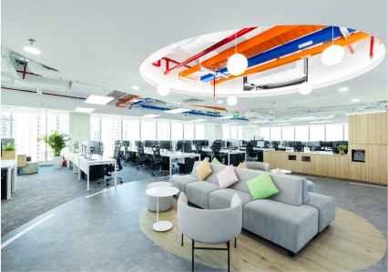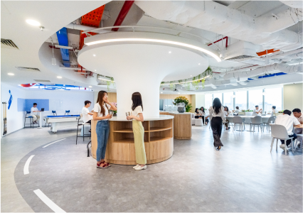 TechX Vietnam's office is designed around the concept of a "Sparkling Town," bringing the vitality and interaction of a city into the workspace. Flowing lines reminiscent of city streets and a bright, sleek design make daily tasks creative and dynamic.