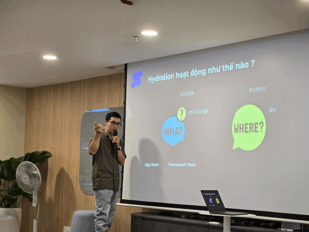 Không thể không nhắc đến anh Trần Anh Tuấn với cuộc “cách mạng Qwik” – buổi chia sẻ đã thu hút sự quan tâm và tò mò của đông đảo anh chị em developers TechX. Đặc biệt hơn, kỹ thuật này sau đó đã được áp dụng vào sản phẩm nội bộ của công ty, tiếp tục khẳng định tinh thần đổi mới và dám thử nghiệm tại TechX.